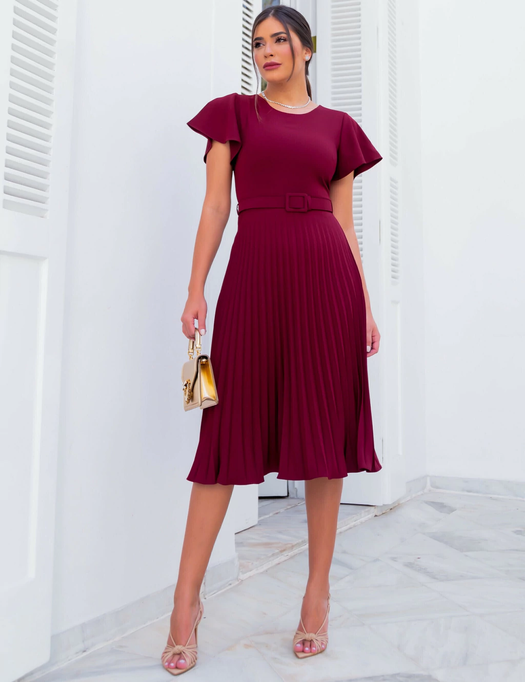Elegante, delicado e atemporal, o Vestido Midi Festa em Crepe é perfeito para quem busca sofisticação com leveza e fluidez. Confeccionado em crepe de alta qualidade, o modelo possui shape acinturado com saia plissada que valoriza os movimentos. A parte superior conta com gola canoa, mangas curtas com leve abertura e detalhe nas costas com gota e fechamento por botão delicado. O cinto do mesmo tecido acompanha a peça, realçando a cintura de forma harmoniosa. O zíper invisível nas costas garante praticidade sem comprometer o acabamento refinado.